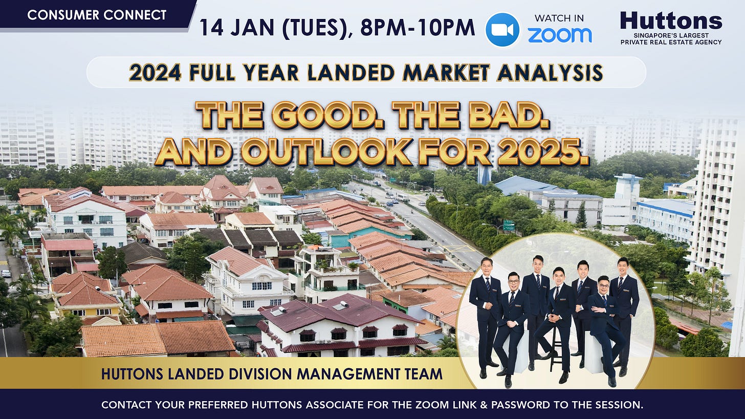 Curious about the latest trends in the landed property market? Join our Huttons Landed Division Management Team for a comprehensive analysis of the full 2024. Discover the highs, the challenges, and what could be happening in 2025 to stay ahead of the ever-evolving market and make informed decisions.